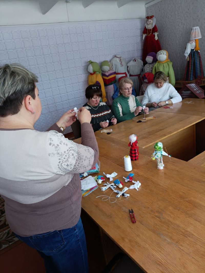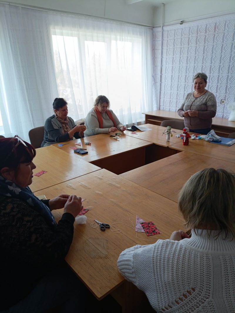 Далее методистом-мастером отдела традиционного искусства и ремесел Лямцевой Л.М. было организовано заседание любительского объединения декоративно-прикладного творчества «Наша Спадчына». Лариса Михайловна познакомила участников с обережной куклой «Вербницей» и провела мастер-класс по технологии ее изготовления.
